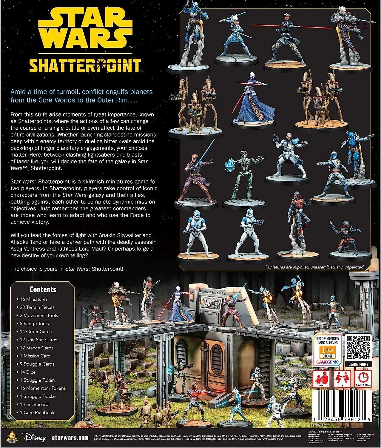 - TACTICAL STRATEGY GAME: Focusing on dynamic fights between key characters and a unique combat system that brings the feel of epic Star Wars duels to the tabletop. Star Wars Shatterpoint gives players 16 characters to begin building their squads along with a selection of terrain to begin constructing their battlefields.