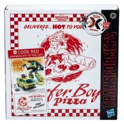 - Packaging is designed to look like a pizza box based on the Surfer Boy pizza from the show! Makes a great gift for Transformers robot fans and Stranger Things fans!