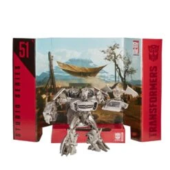 In the Serengeti Hideout scene from Transformers: Dark of the Moon, Soundwave and Laserbeak report to Megatron that the Autobots have discovered the Ark, and returned to earth with the cargo. Pleased with this news, Megatron issues them a new set of orders: eliminate the human collaborators. Intricate Conversion and Movie-Inspired Accessories: This Studio Series 51 Deluxe Class Soundwave figure features vivid, movie-inspired deco and converts from robot to car mode in 19 steps. Remove backdrop to showcase Soundwave in the Serengeti Hideout scene. Includes a detailed Laserbeak figure accessory that attaches to his arm.