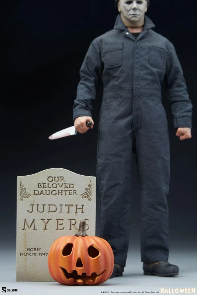 The Michael Myers Deluxe Sixth Scale Figure includes a variety of accessories to recreate multiple cinematic moments in your collection. The figure comes with eight different hands, including a pair of fists, a pair of grip hands, a pair of open hands, and a pair of posed gesture hands for interacting with his killer tools of the trade. Michael Myers also includes both a clean knife and bloody knife for holding, as well as a corded telephone accessory, perfect for terrorizing teenagers on Halloween night. The figure also features a Judith Myers headstone accessory and a carved Jack-O-Lantern with a light-up feature, both of which can be placed in proximity to the figure to create a more detailed Halloween scene.