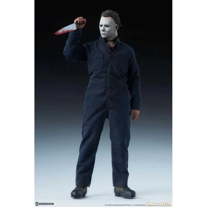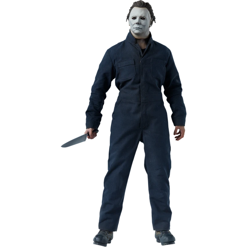 Inspired by his iconic appearance in the original Halloween (1978) movie, the Michael Myers Deluxe Sixth Scale Figure wears a costume of tailored blue fabric coveralls and a black fabric undershirt as well as sculpted boots. The figure includes two distinct portraits, one featuring a detailed depiction of his infamous mask, complete with sculpted hair and weathering details, and one portrait with non-removable glasses and a fabric sheet ghost costume.