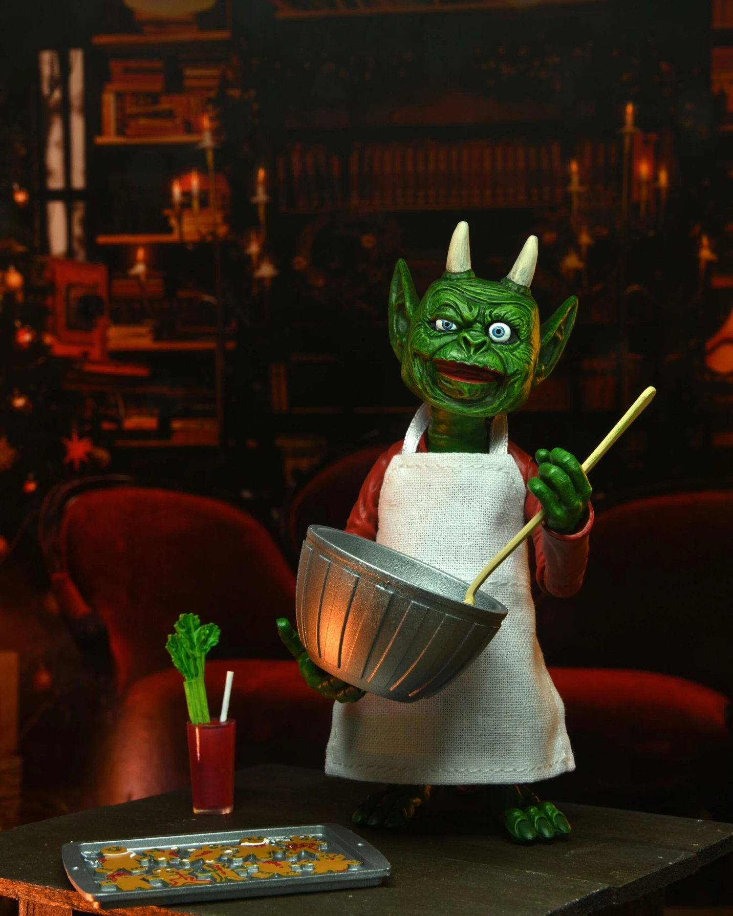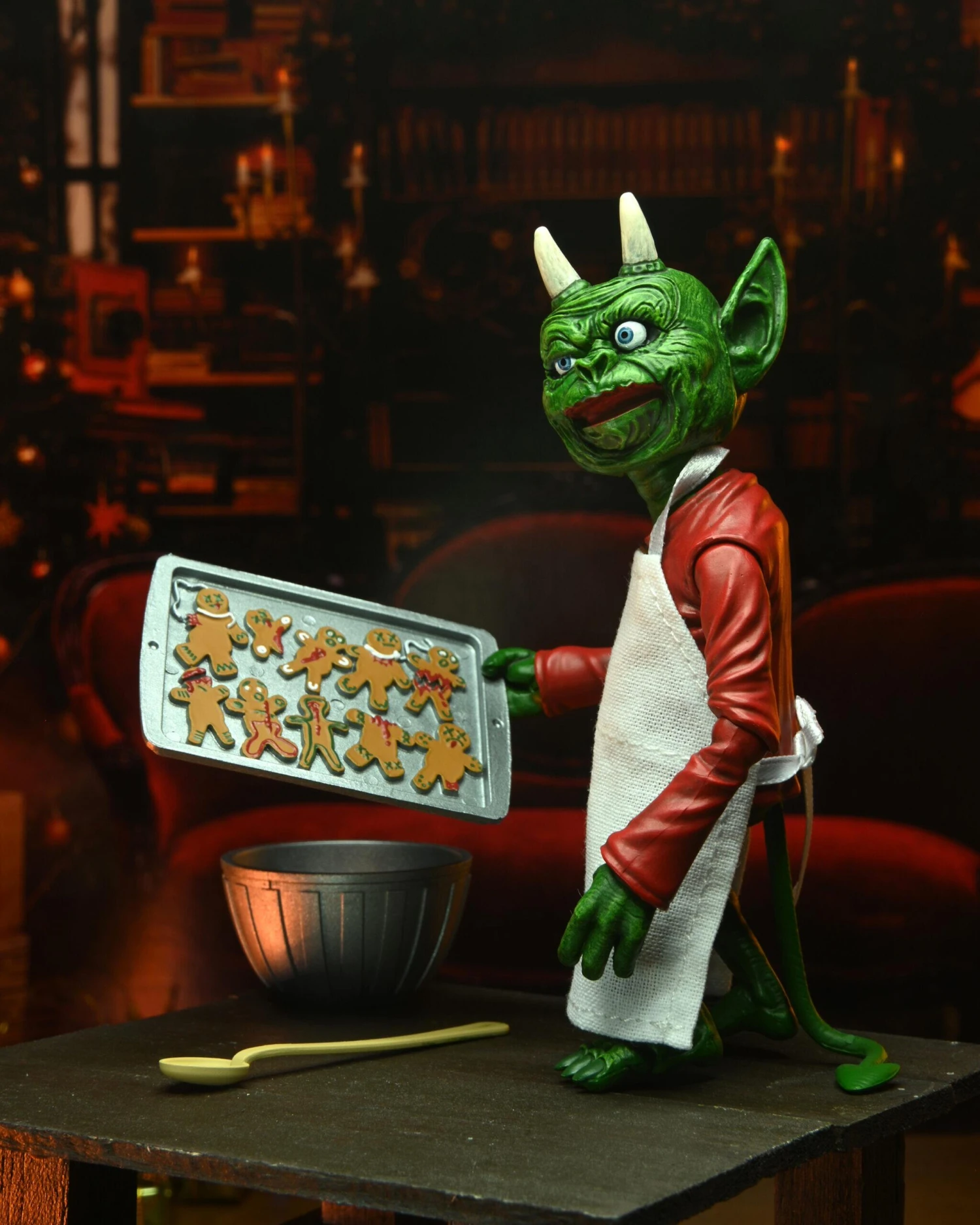 The devilishly delightful Cassandra Peterson has played the part of Elvira for more than 40 years with grace, humor and more than a little camp. NECA is proud to present this hauntingly holiday themed figure for your horror collection. This Deluxe Scary Xmas Elvira 8β action figure is fully articulated and features tailored fabric clothing, two interchangeable expressions, Bloody Mary, naughty list with quill, tray of gingerdead men cookies, and an articulated βCreature Who Was Stirringβ figure with tailored fabric apron, bowl, and spoon. Comes in window box packaging with slipcover.