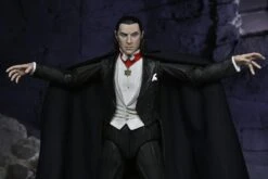 To celebrate the 90th anniversary of Universal Monstersβ acclaimed silver-screen classic, NECA announces an Ultimate action figure of the most famous vampire of them allβ¦ Dracula! We worked closely with the estate of Bela Lugosi to capture the actorβs expressive likeness in three different head sculpts, and for additional background detail on important costume elements. Standing in 7β scale, the Ultimate Dracula (Transylvania) action figure has a soft goods cape and comes in premium anniversary packaging with plenty of accessories: 3 interchangeable heads, interchangeable hands, large bat, wine bottle, goblets, candlestick and serving plate