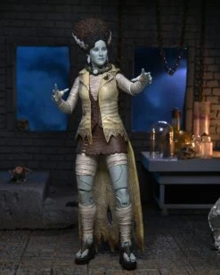 Ripped from the headlines! NECA is releasing a new Universal Monsters x Teenage Mutant Ninja Turtles action figure starring intrepid reporter April OβNeil! This continuing line pays tribute to the worldβs most famous turtles and Universalβs icons of horror. April as The Bride reimagines Judith Hoagβs April OβNeil as the Bride of Frankenstein in a terrifying mashup! Electrifying exposΓ©s! Shocking news stories! Itβs journalism that really goes for the jugular. WTRLβs only reanimated reporter digs up the dirt with a full complement of accessories, and never misses a DEADline… This 7β scale figure includes microphone, handbag, spider, lightning bolt Sai, interchangeable heads and swappable